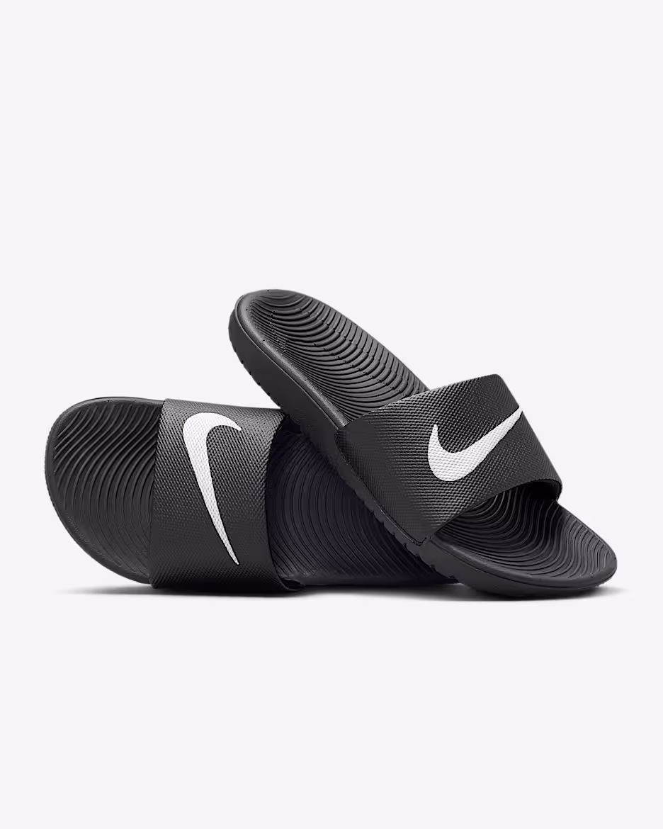 Give growing feet the comfort they deserve with the Nike Kawa Little/Big Kids’ Slides. These slip-on sandals feature a soft synthetic strap that moves naturally with the foot and a plush foam footbed for lightweight cushioning with every step. The flexible outsole promotes natural movement, making them perfect for after sports, beach days, or casual wear. Easy to wear and even easier to love, the Kawa Slides are built for comfort, convenience, and sporty style.